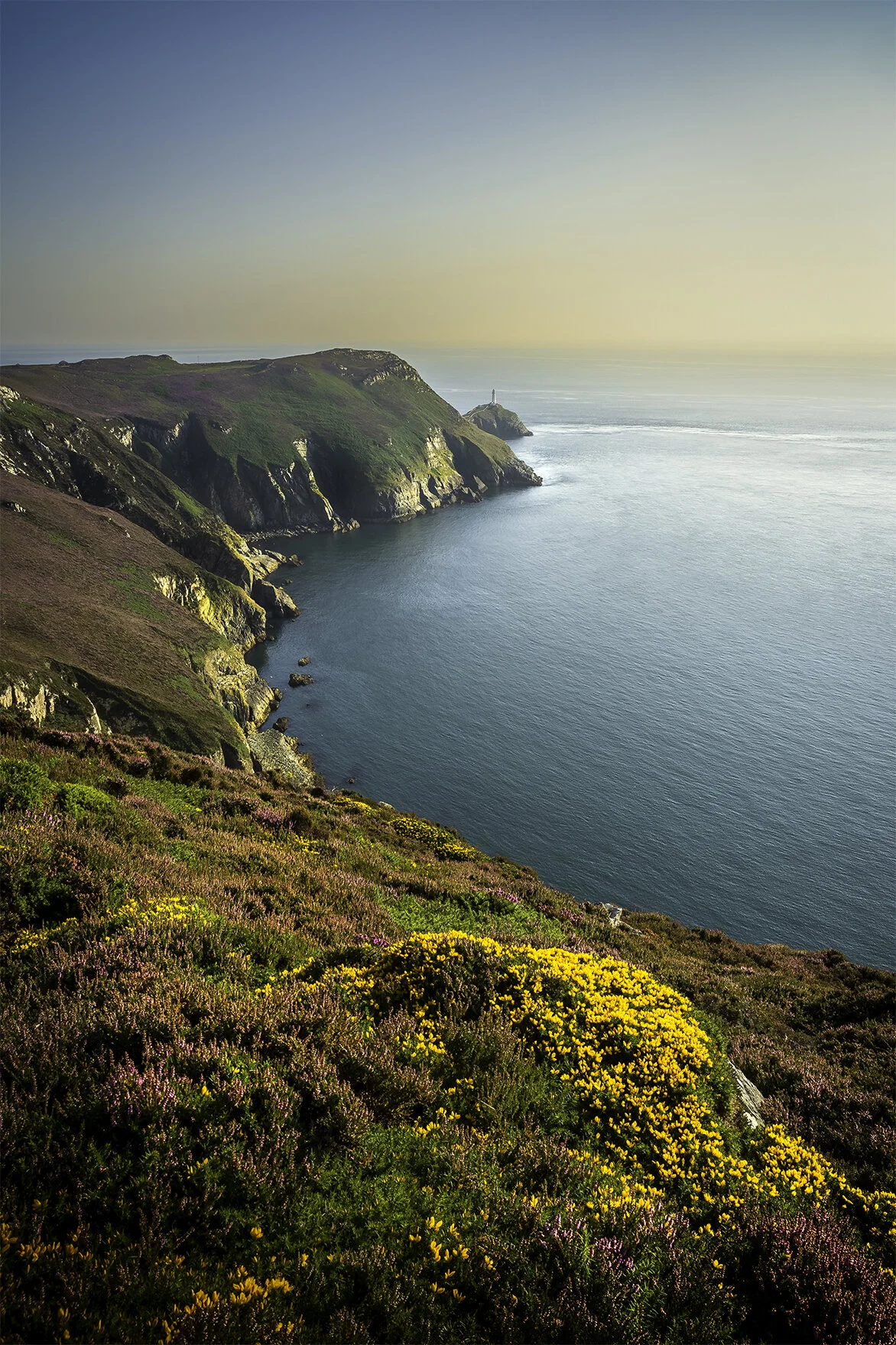 The curse of landscape photography is clear blue skies. However, it did make for a lovely walk along the coastal path from Southstack towards Northstack. I had wanted to do this walk to try and find a less photographed view of Southstack. Thankfully the heather was all about to bloom and the broom bushes popped under the the clear blue sky.